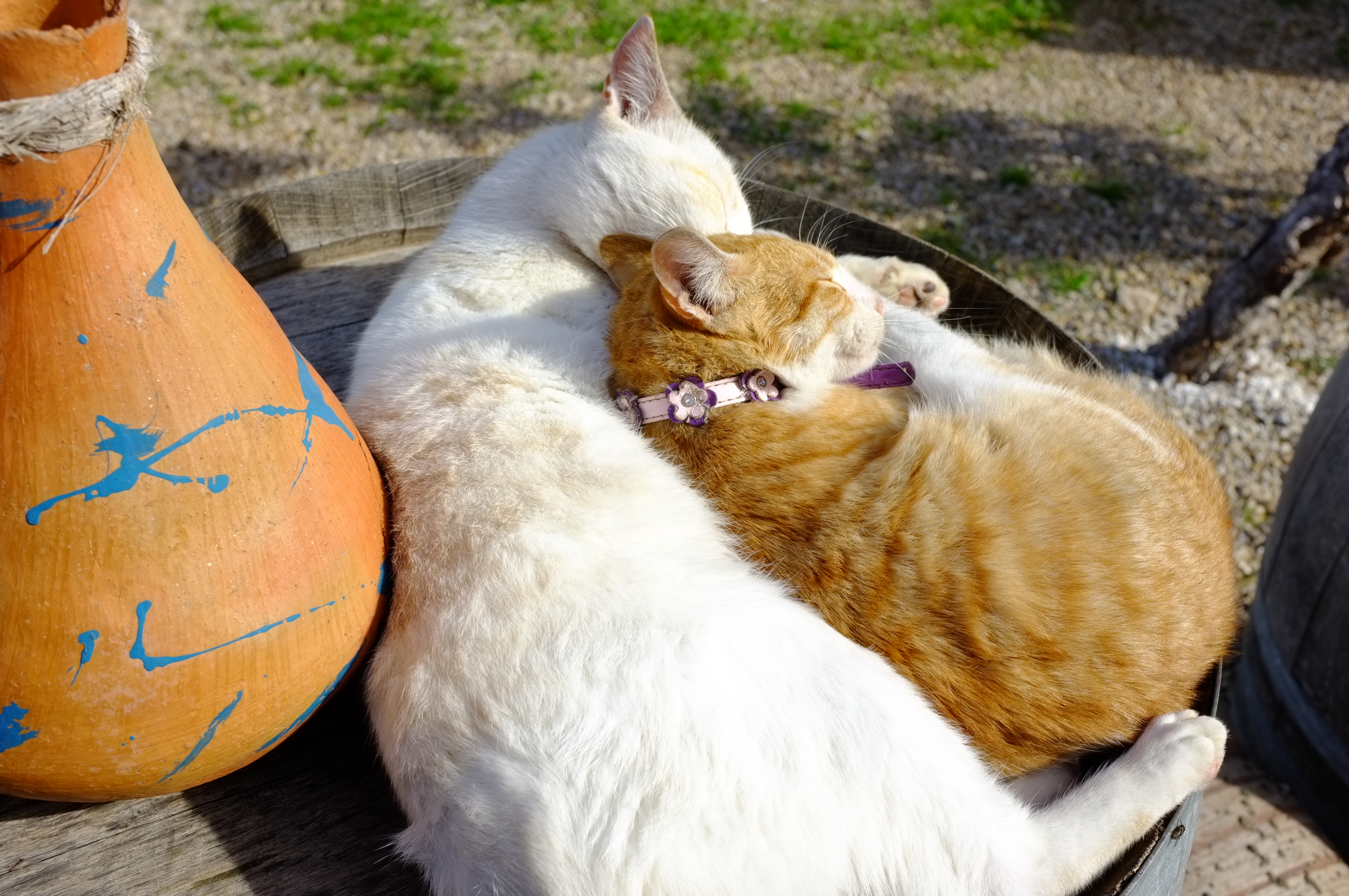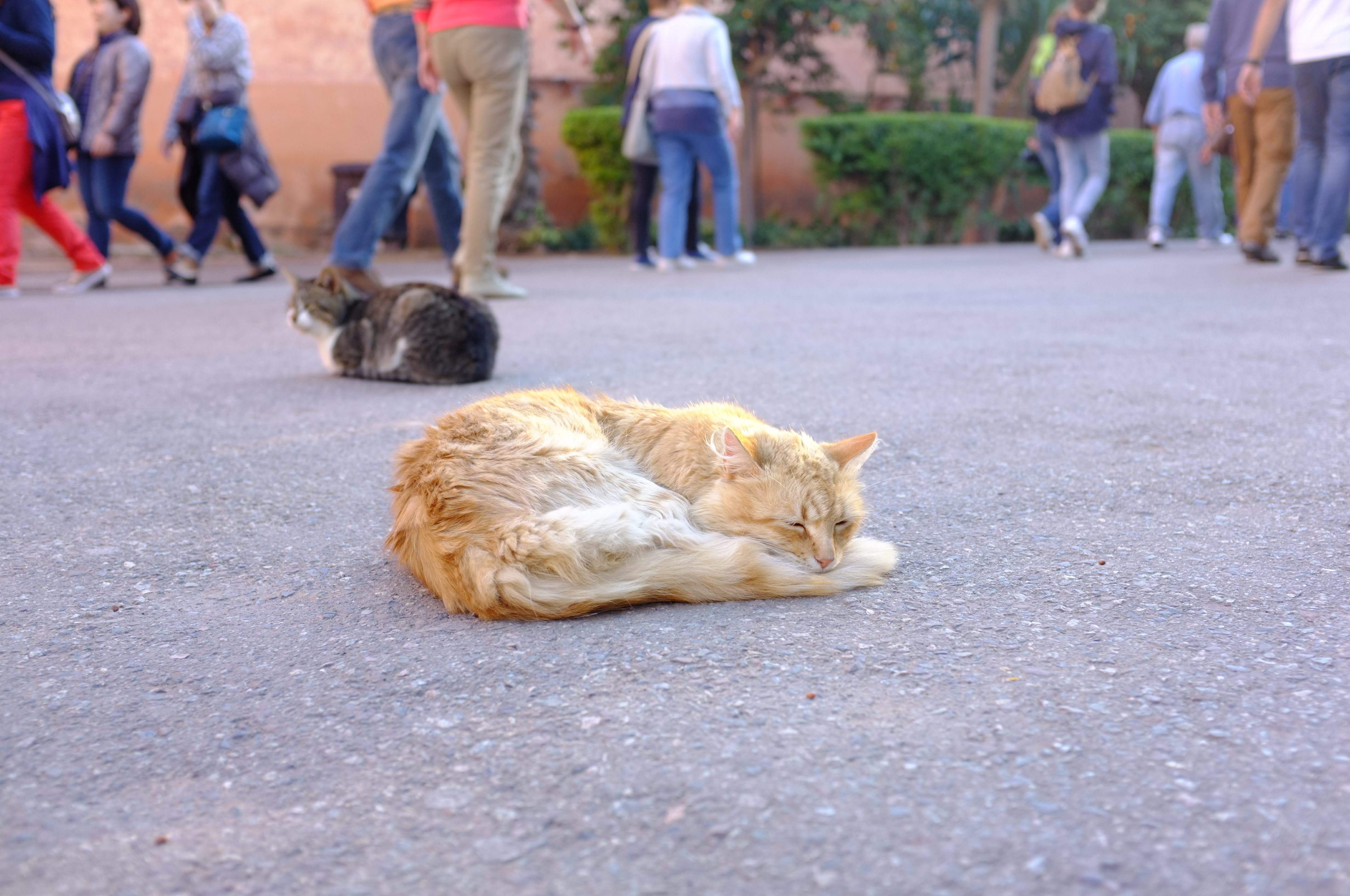 These two cats did not mind or noticed the passers-by. Tourists even have to mind them not to tread on their tail