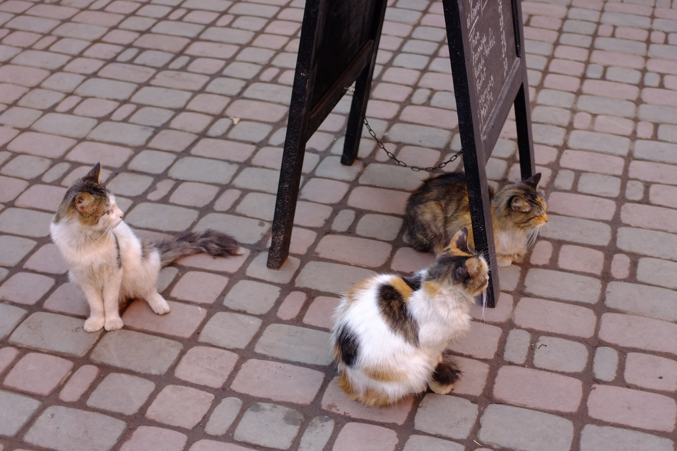 Group of cats: most cats I saw in Morocco were hanging around on their own. But from times to times they were sitting in small groups.