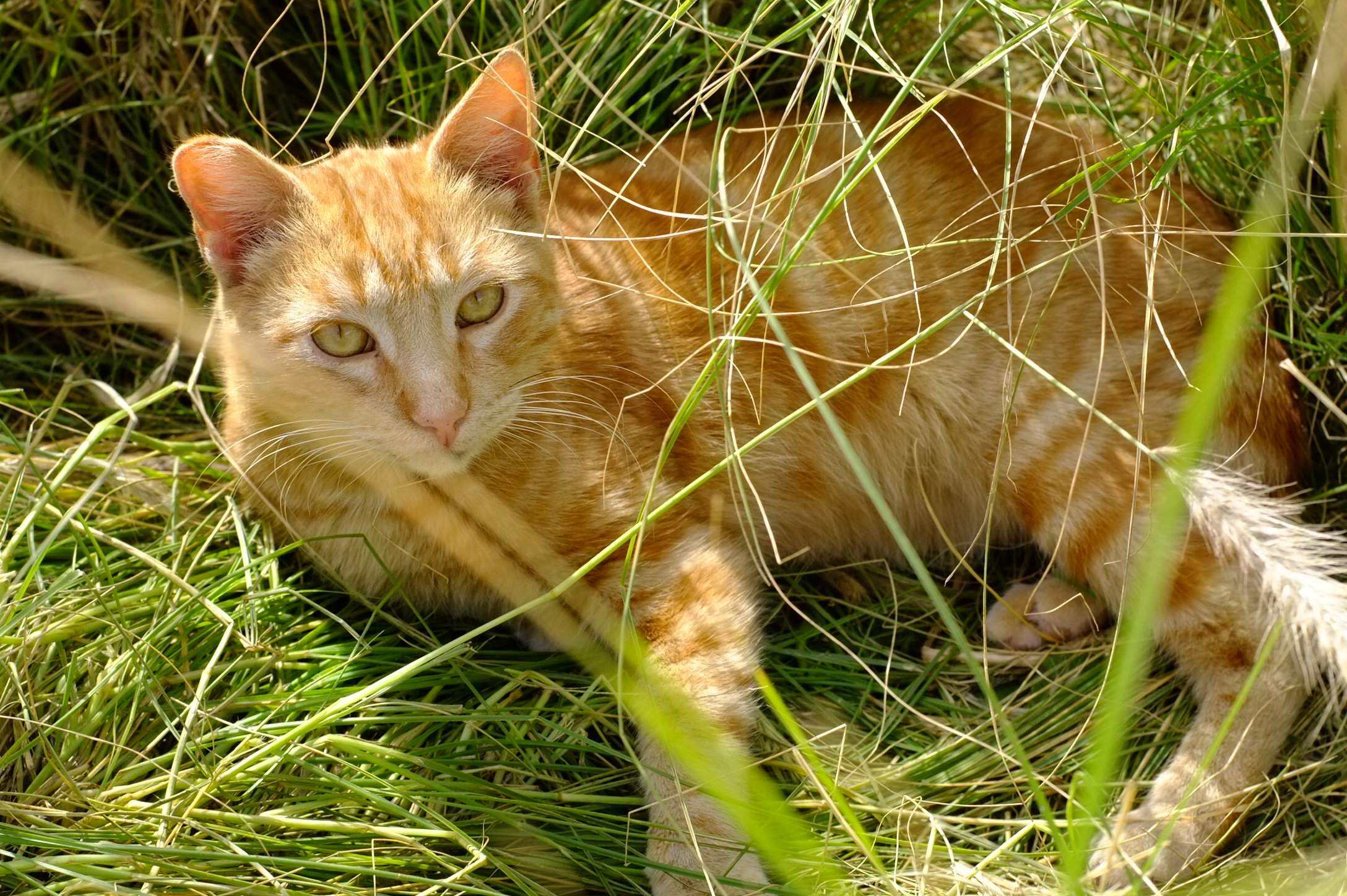 This little buddy was laying almost hidden among the high grass, a few feet from a fellow street dog
