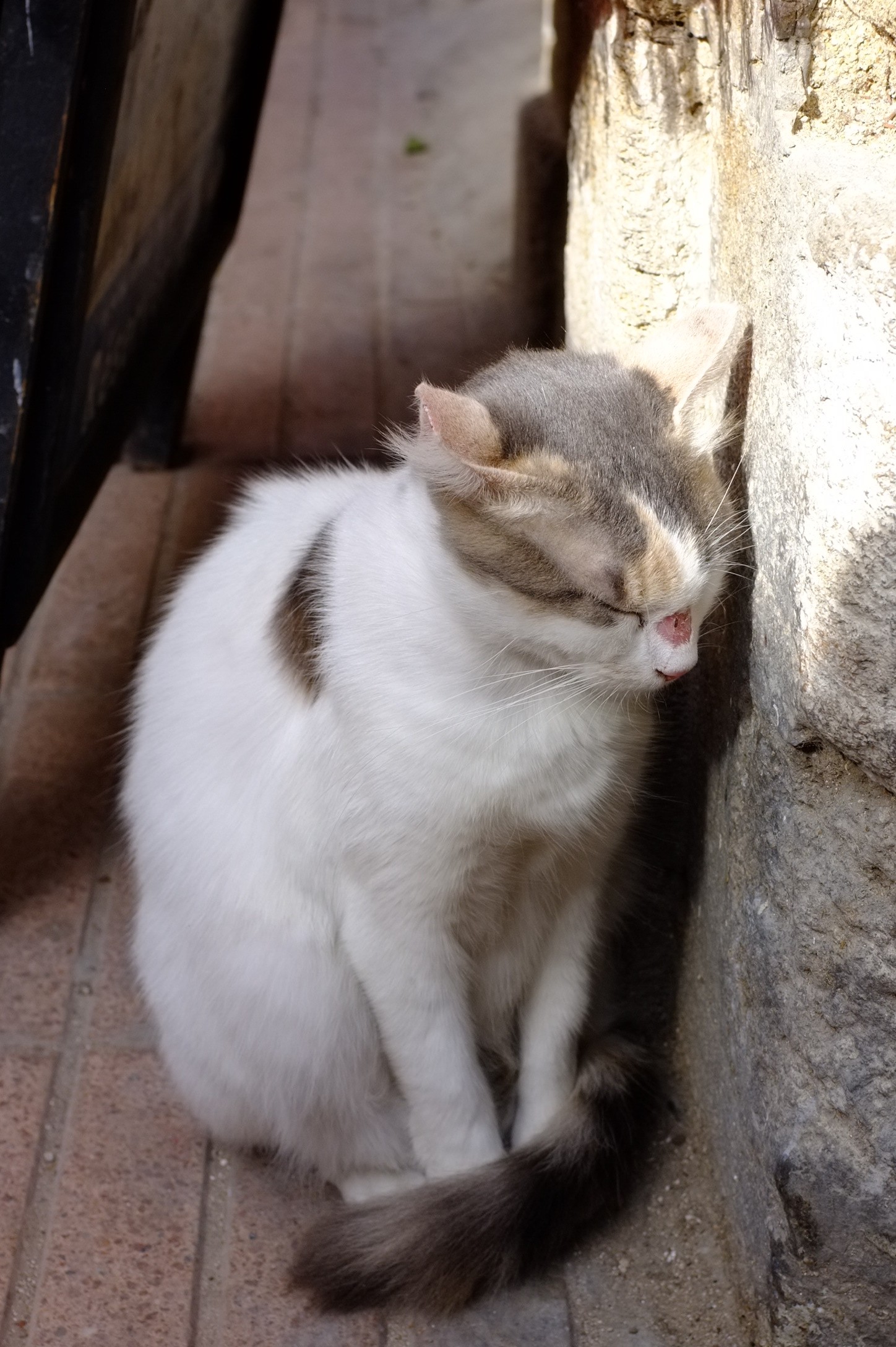 This cat was sitting in the middle of the street, among passer-by. When I kneeled in front of him, he did not even seem to notice, or care…