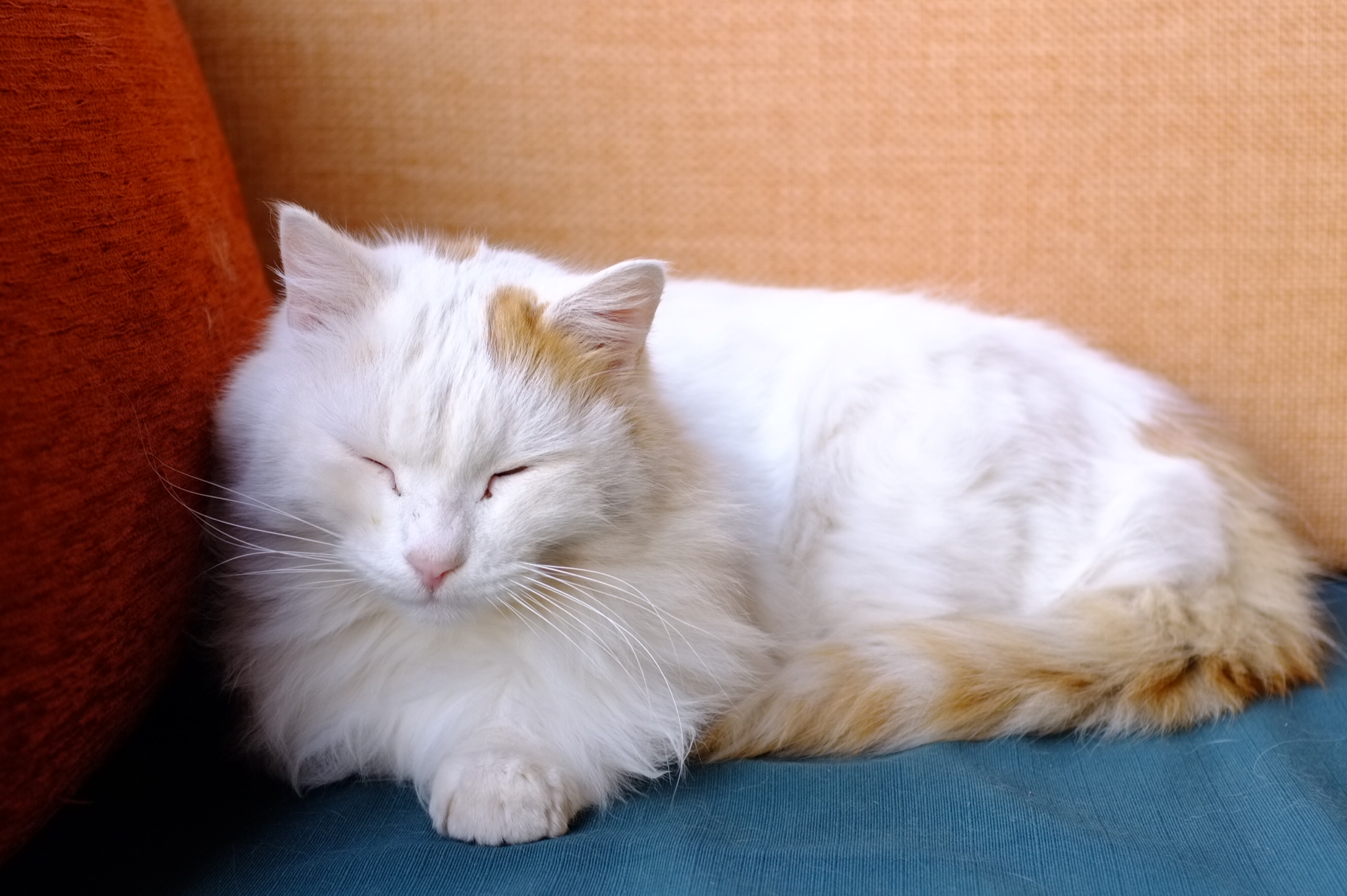 Sleepy cat on a traditional couch – Ourika Valley, Morocco
