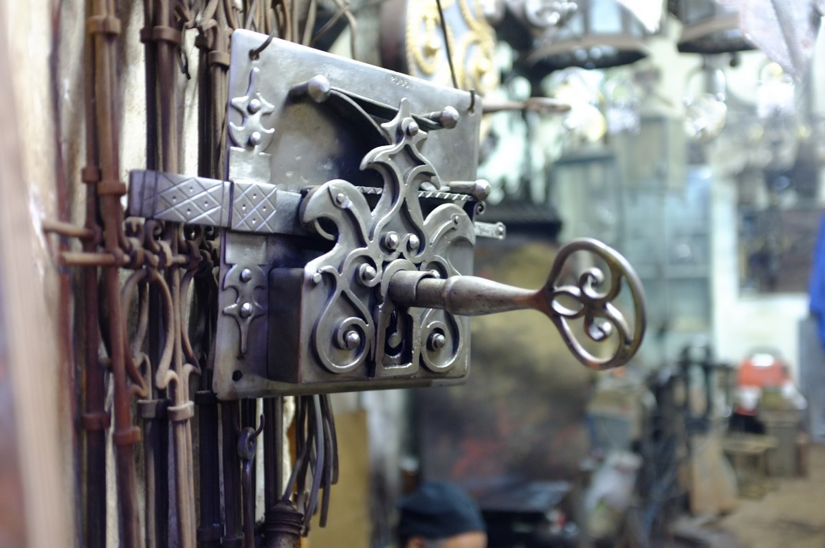 Hand-made lock in a blacksmiths workshop.